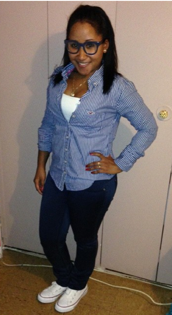 This last look is so comfortable and charming. This is a safe outfit. You can never go wrong with a button down and converse. And funky glasses just add more fun to the already hip look.