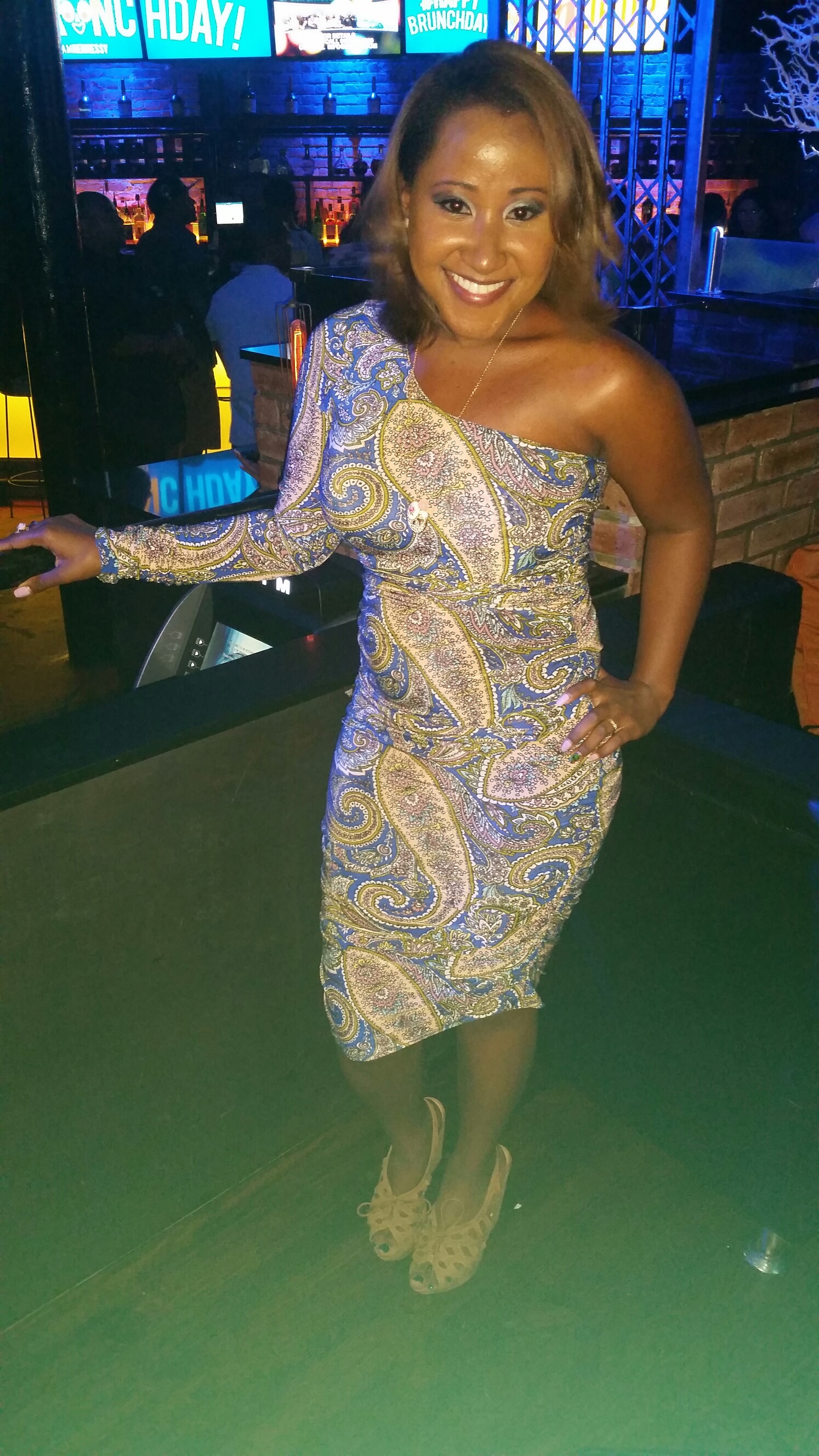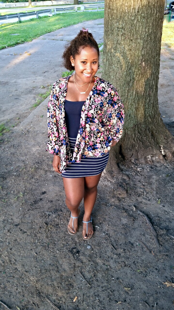 This lovely dress I wore on my birthday, to a late brunch celebration. I love this dress because of its unique pattern and it hugs my curves nicely. It is sexy but not too revealing. Again because the dress itself it very busy I had to keep my shoes simple. I decided on the tan wedges which blend in with the tan and yellow in the dress. This outfit is pretty versatile, it is fun enough for an afternoon affair but also elegant enough for a night event.