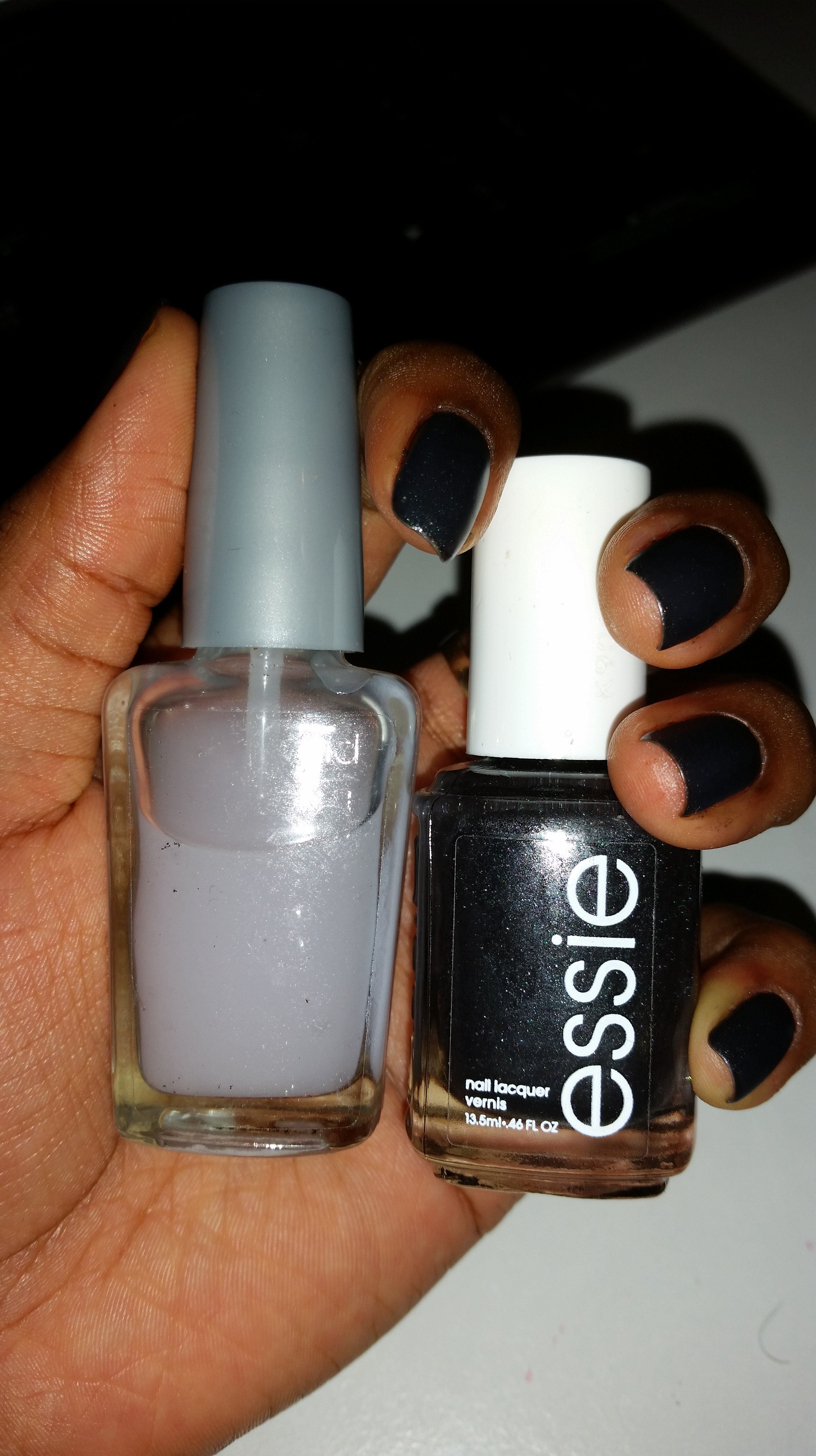2. Then I applied two coats of Essie over the edge which is a black metallic glittery tone