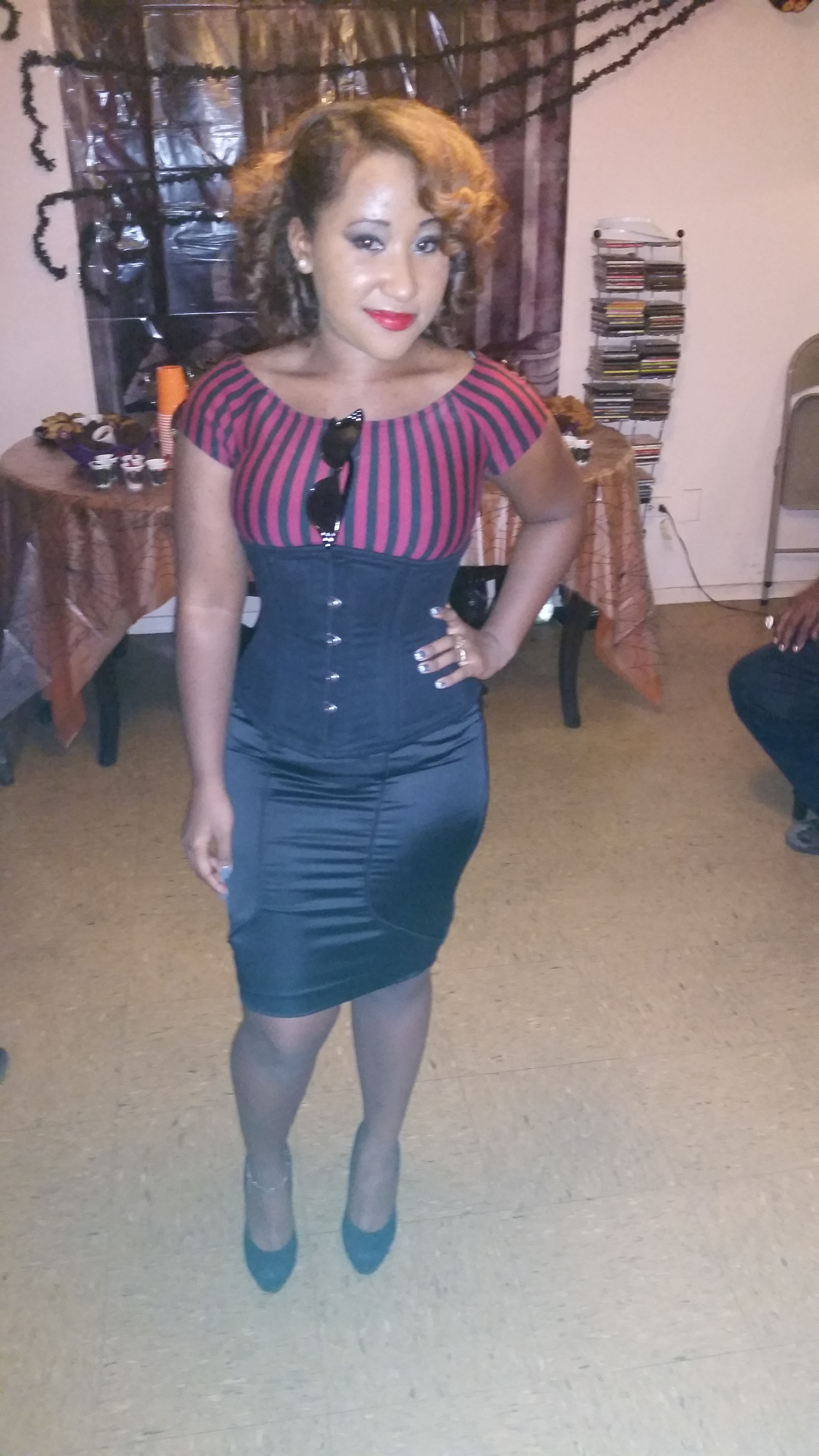 I found this off the shoulder top which fits in perfect with the 50’s era. The pencil skirt matched the top and was perfect to wear under my corset. By the way I have used this corset for waist training (orchardcorset.com).