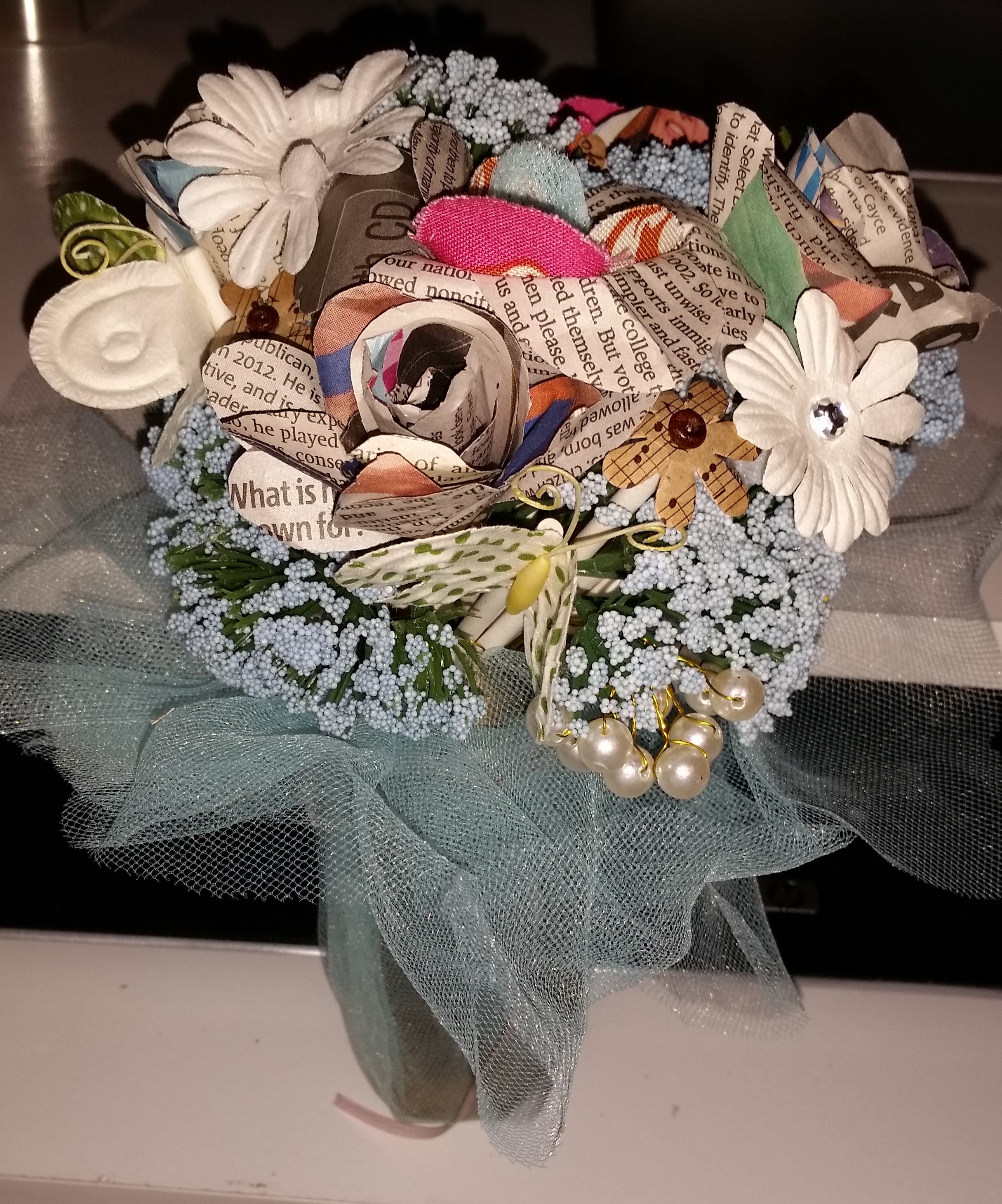 Step 12: tie a thin ribbon around the top of the bouquet on top of the rubber-band